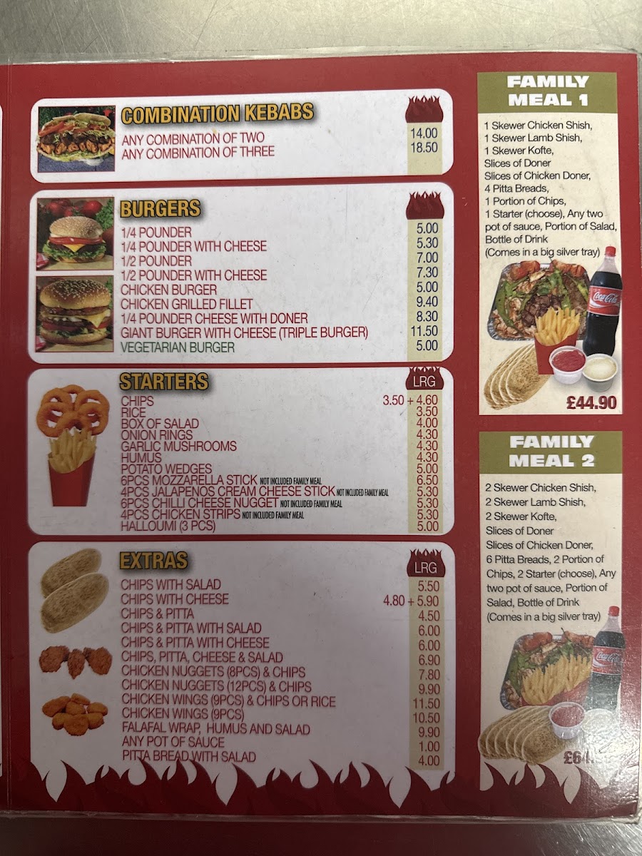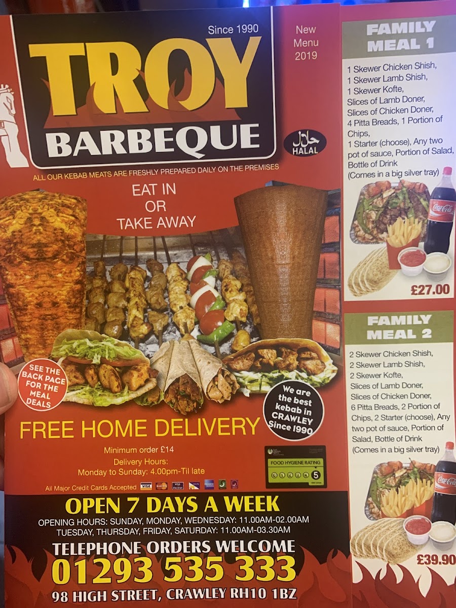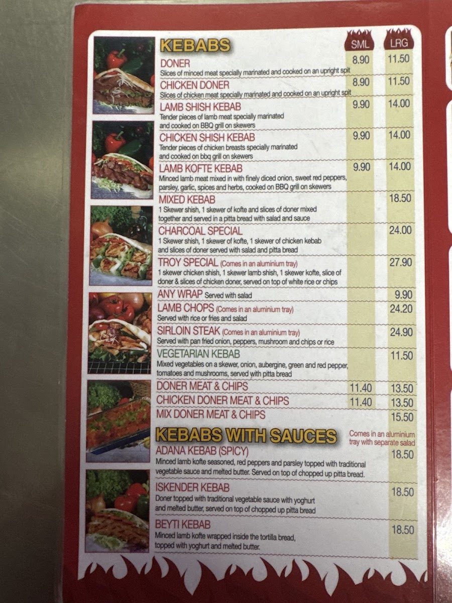 From a reviewer’s perspective, the menu at Troy Barbeque offers a wide and satisfying range of classic takeaway favourites, making it easy to find something for every appetite. The starters such as Small Chips, Large Chips, Mix Salad Box Rice, and Onion Rings are simple but reliable choices to begin with, while the burger selection includes hearty options like the Quarter Pounder Burger, Quarter Pounder Burger With Cheese, Half Pounder Burger, Half Pounder Burger With Cheese, and Chicken Burger. The kebab section stands out with flavourful options such as the Small Meat Doner Kebab, Large Meat Doner Kebab, Spicy Adana Kebab, Iskender Kebab, and Beyti Kebab, along with customizable Combination Of Any Two Kebab or Combination Of Any Three Kebab. There are also seafood choices like Bbq Seabass With Rice and Bbq Seabass With Chips, plus plenty of extras, kids meals, and meal deals for good value. To finish, desserts like 3 Pcs Turkish Baklava Pistachio and 500 Ml Haagen Dazs Strawberry Cheese Cake Ice Cream pair nicely with drinks such as Coke Can or Sprite Can, rounding out a menu that is varied, filling, and well-suited for casual dining.